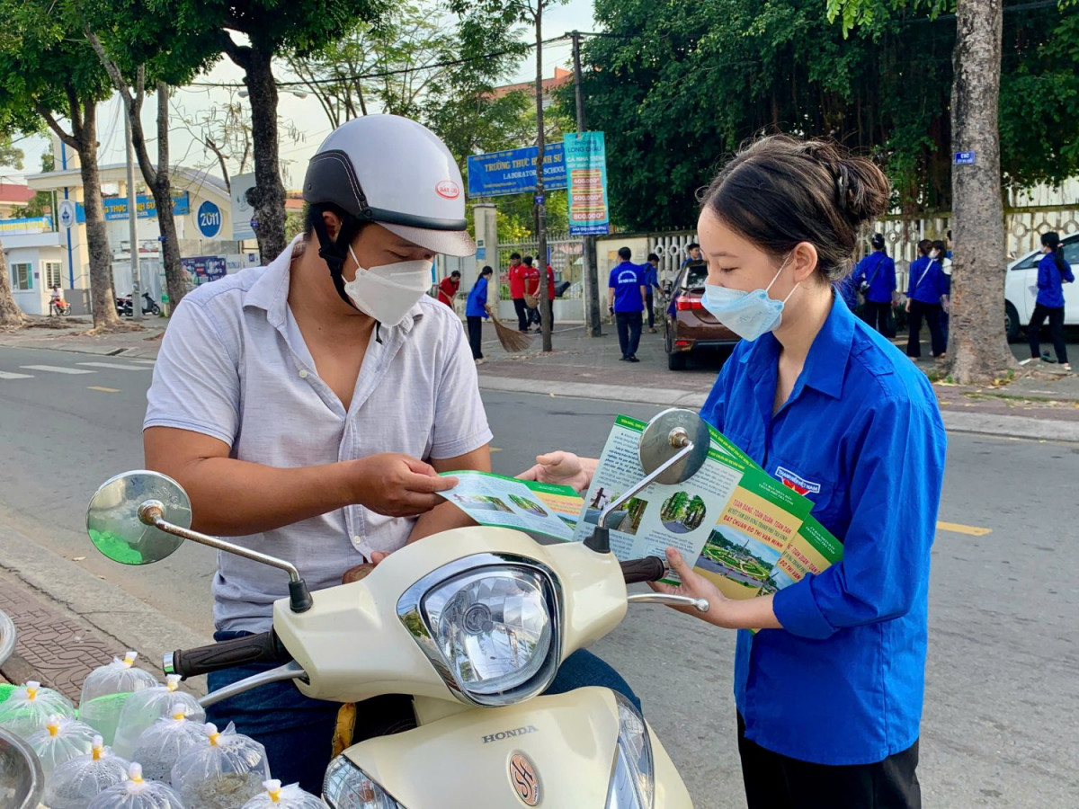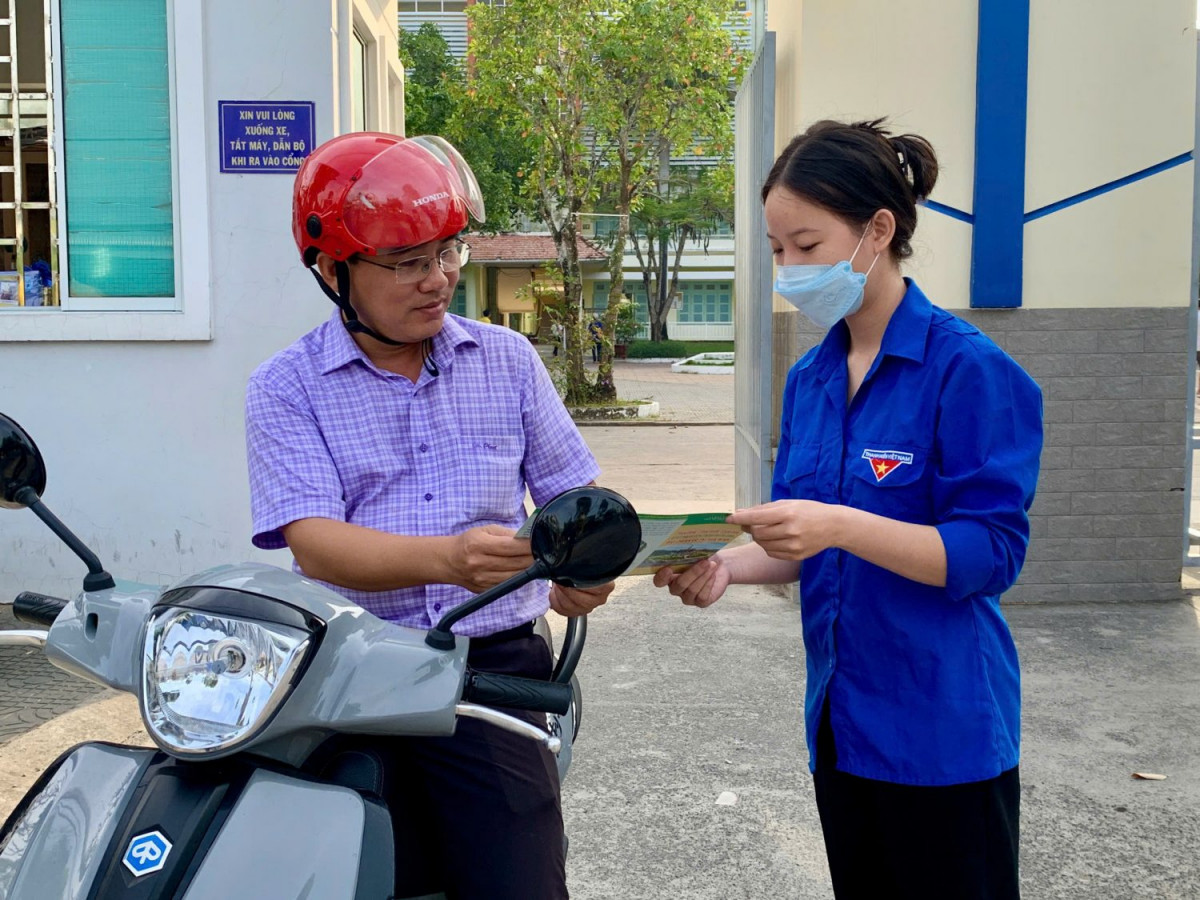 Đoàn viên phát tờ bướm tuyên truyền cho người dân