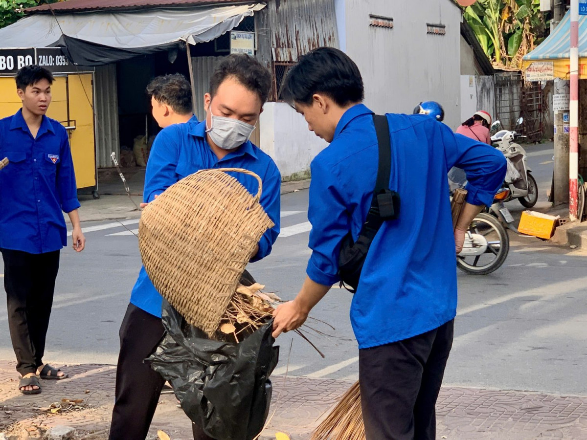 Các bạn đoàn viên thu gom rác tuyến đường Phạm Ngũ Lão