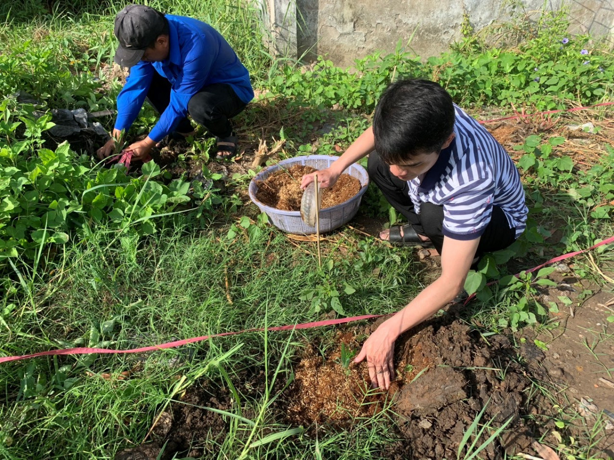 Đoàn viên trồng cây xanh khuôn viên làm việc