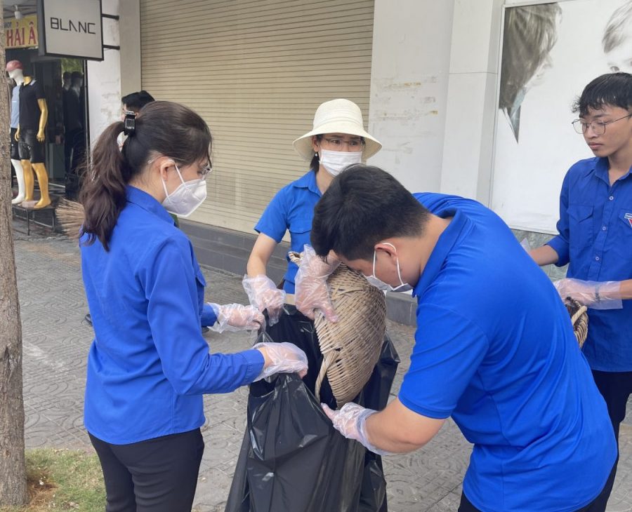 Đoàn viên dọn vệ sinh tuyến đường Điện Biên Phủ