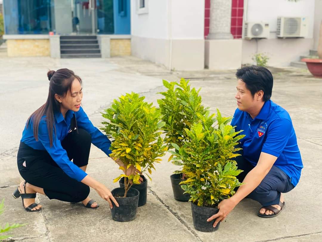Chi đoàn Đài PT&TH Trà Vinh trông cây kiểng tạo cảnh quan nơi làm việc