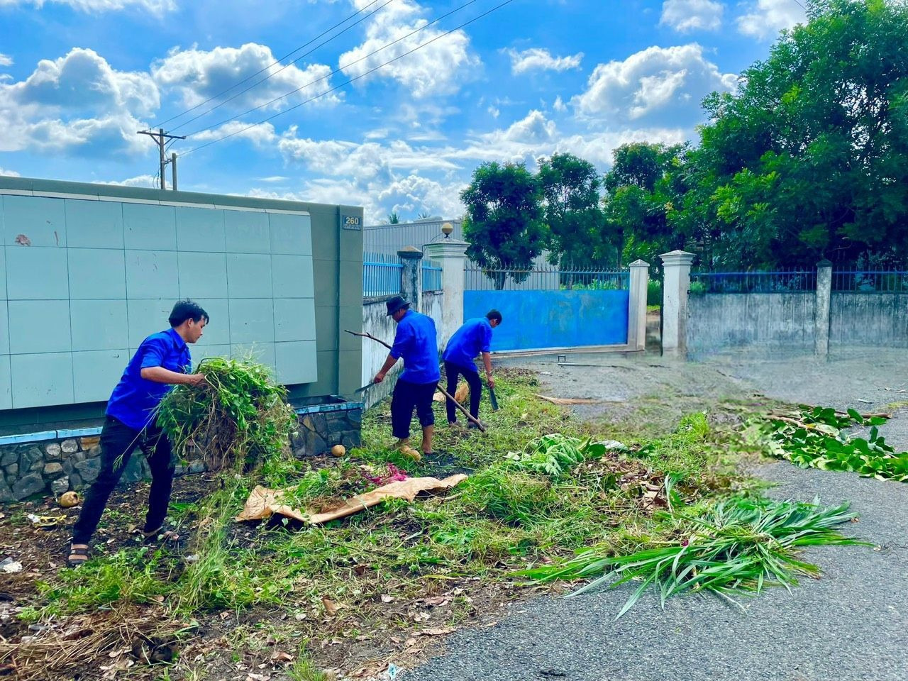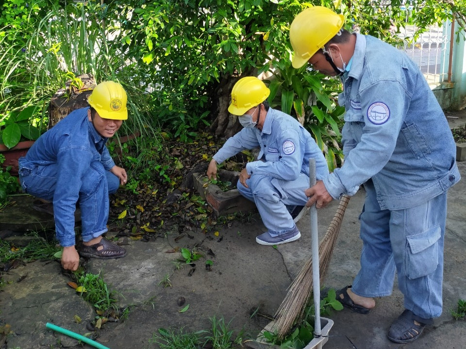 Chi đoàn Công ty Cổ phần Phát triển điện Trà Vinh vệ sinh khuôn viên nơi làm việc