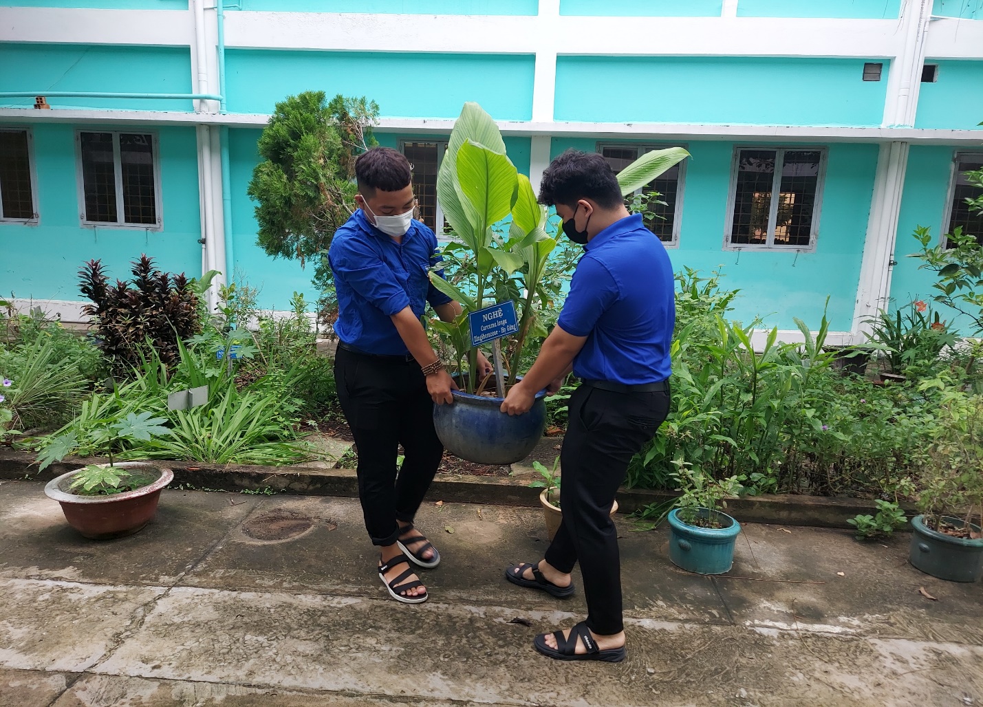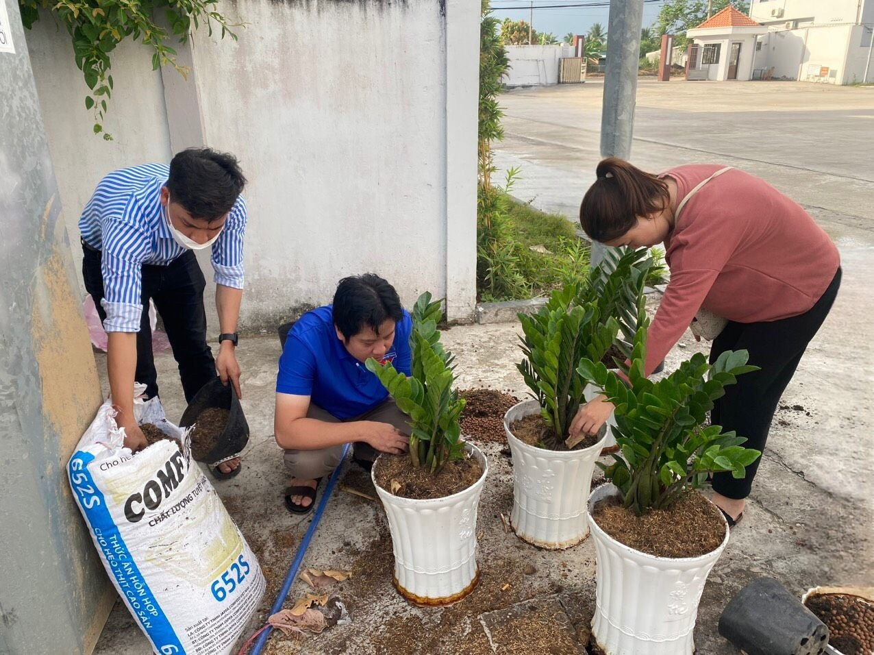 Chi đoàn Đài PT&TH Trà Vinh trồng cây kiểng tạo cảnh quan nơi làm việc