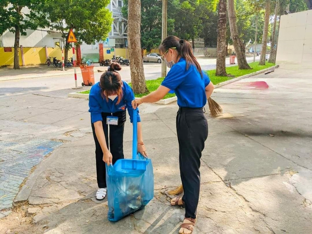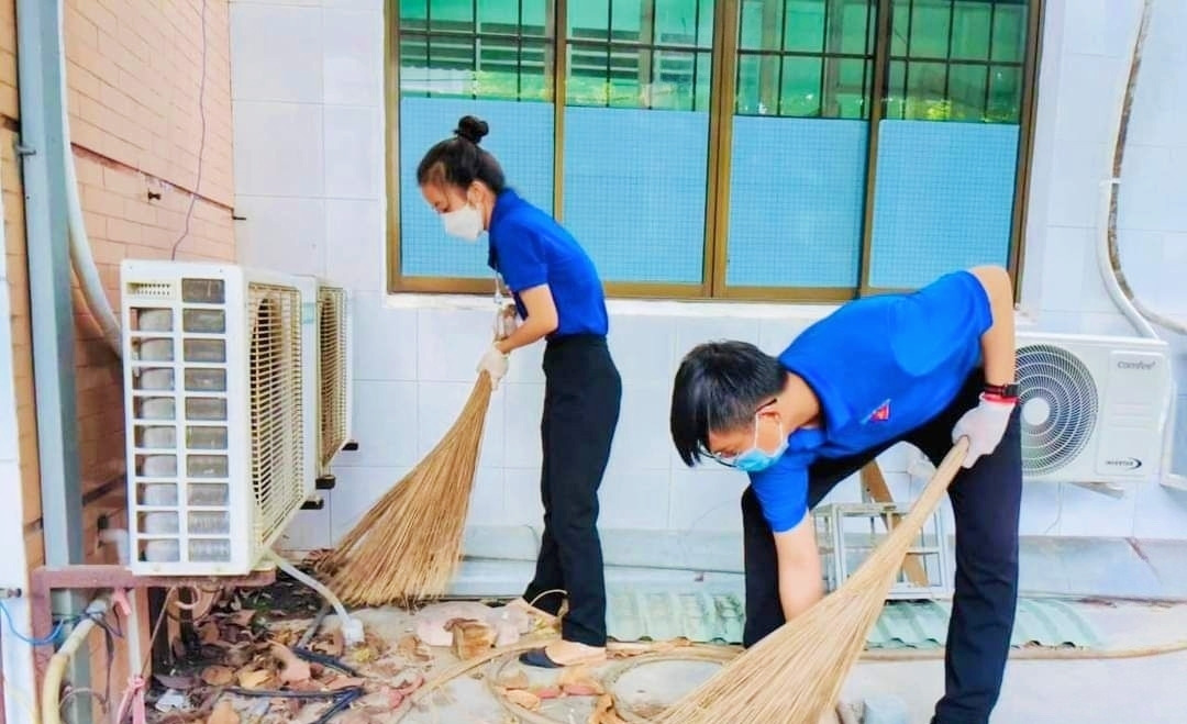 Đoàn viên thanh niên vệ sinh khuôn viên nơi làm việc