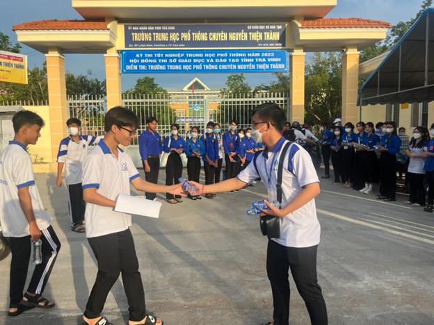 Đồng chí Lâm Chí Trung – UVBCH Tỉnh đoàn, Phó Bí thư Đoàn khối đến thăm, tặng quà cho đội hình chuyên tại điểm thi THPT Chuyên Nguyễn Thiện Thành