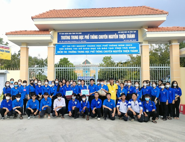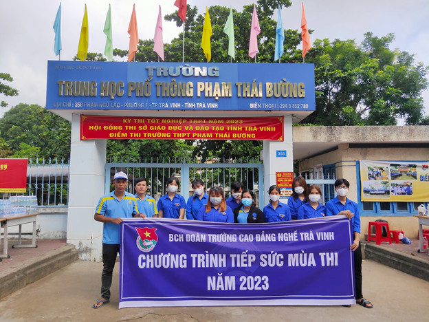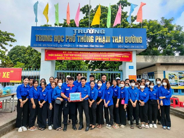 Đội thanh niên tình nguyện “Tiếp sức mùa thi” của Đoàn trường Cao đẳng Nghề Trà Vinh tại trường THPT Phạm Thái Bường