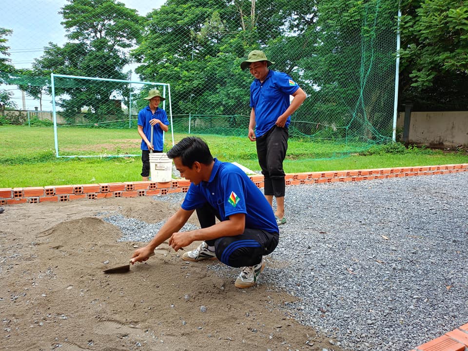 Đoàn viên tham gia xây dựng “sân bi sắt thanh niên”