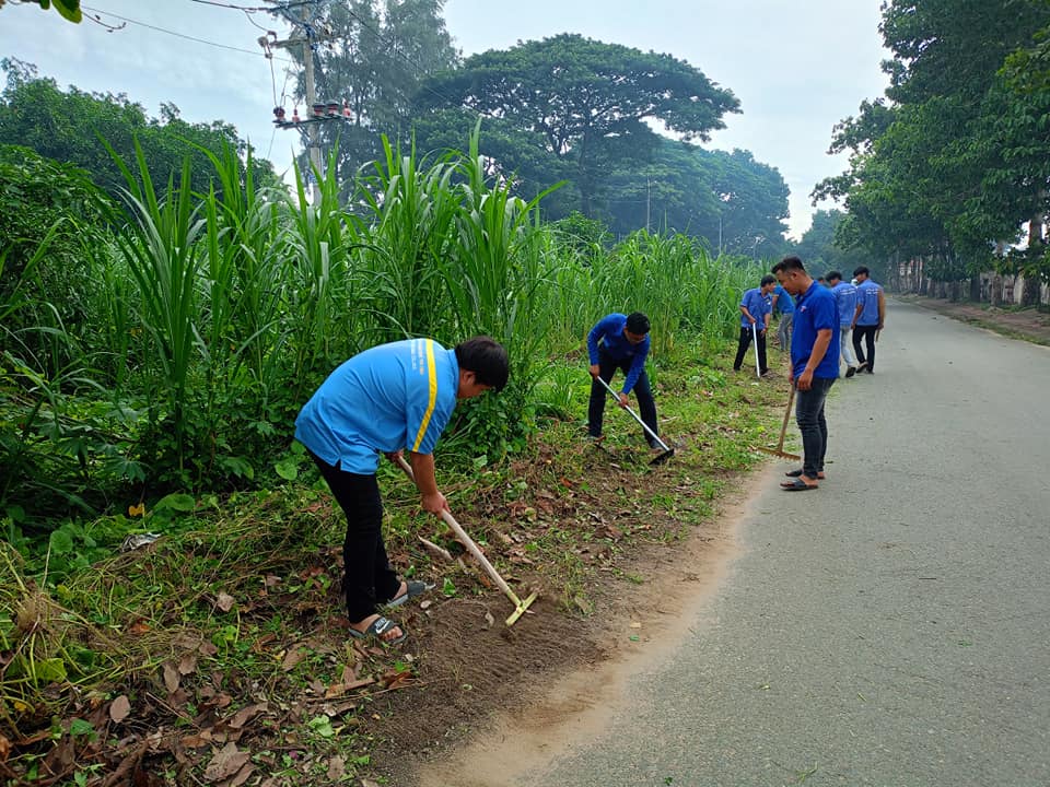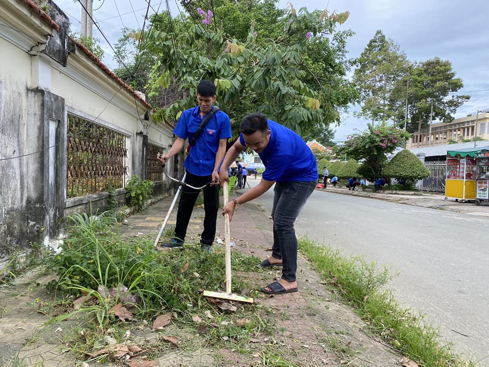 Tại đây, các bạn đoàn viên đã tiến hành làm cỏ, dọn dẹp vệ sinh cảnh quan môi trường, chăm sóc cây xanh tại tuyến đường Bùi Hữu Nghĩa (từ chợ Vàm đến bến phà Long Đức). Đồng thời, ra quân thực hiện công trình thanh niên “Sân bi sắt thanh niên” tại khuôn viên trường.