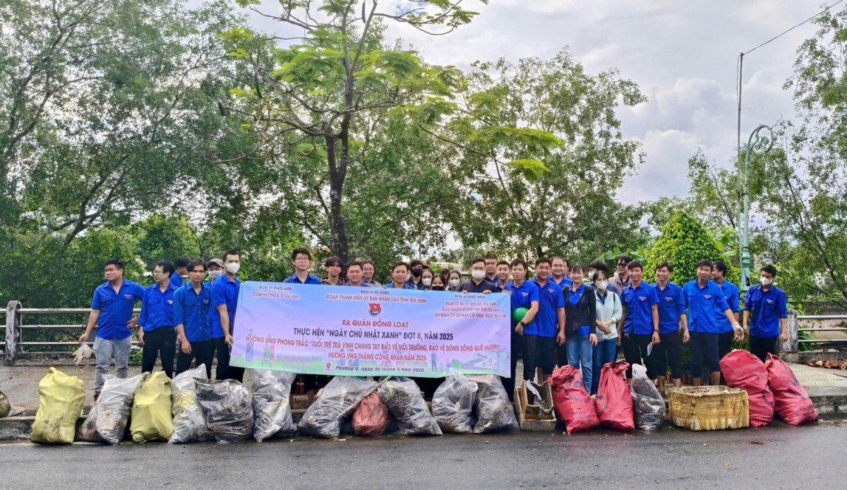 Tuổi trẻ Đoàn thanh niên Ủy ban nhân dân tỉnh ra quân Ngày chủ nhật xanh đợt 3 năm 2025 gắn với hưởng ứng phong trào “Tuổi trẻ Trà Vinh chung tay bảo vệ môi trường, bảo vệ dòng sông quê hương”