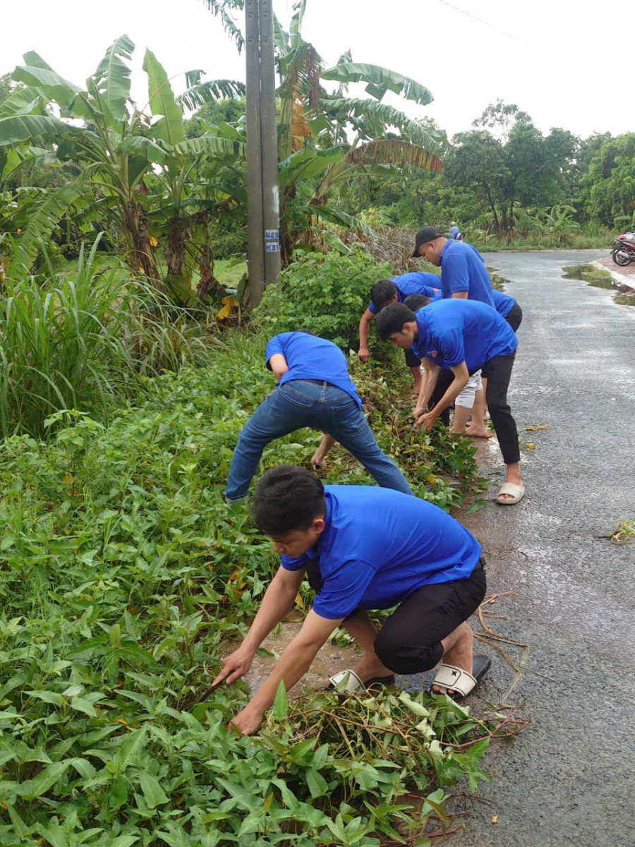 Chi đoàn Công ty Cổ phần Công trình đô thị phát quang bụi rậm các tuyến đường Võ Văn Kiệt (Phường 7)